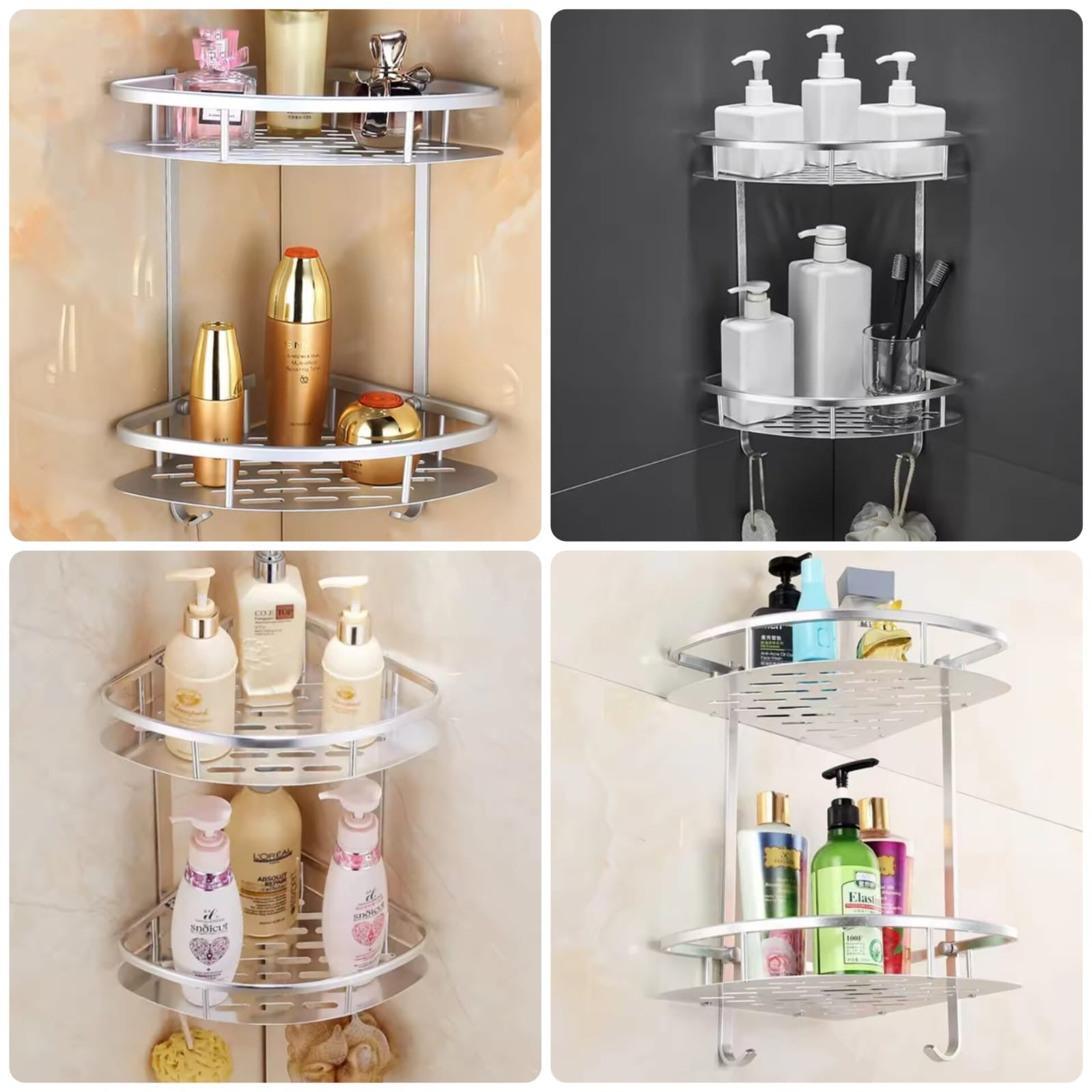 Product Keywords: Corner Bathroom Shelf, 2-Layer Caddy, Aluminum Steel Organizer, Wall-Mounted Shower Shelf, Space Saver, Anti-Rust Bathroom Storage, Sector Shelf.
