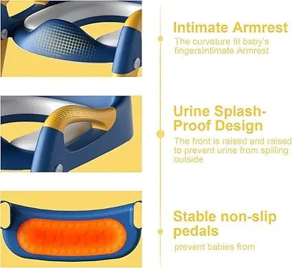 Support your toddler’s independence with this innovative 3-in-1 potty training system: a toilet seat, step stool and ladder all in one. Adjustable height, non-slip steps, splash guard — perfect for safe, confident potty training.