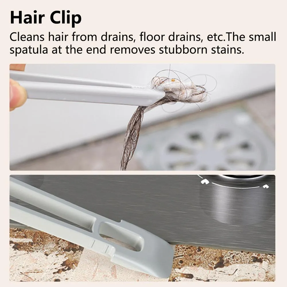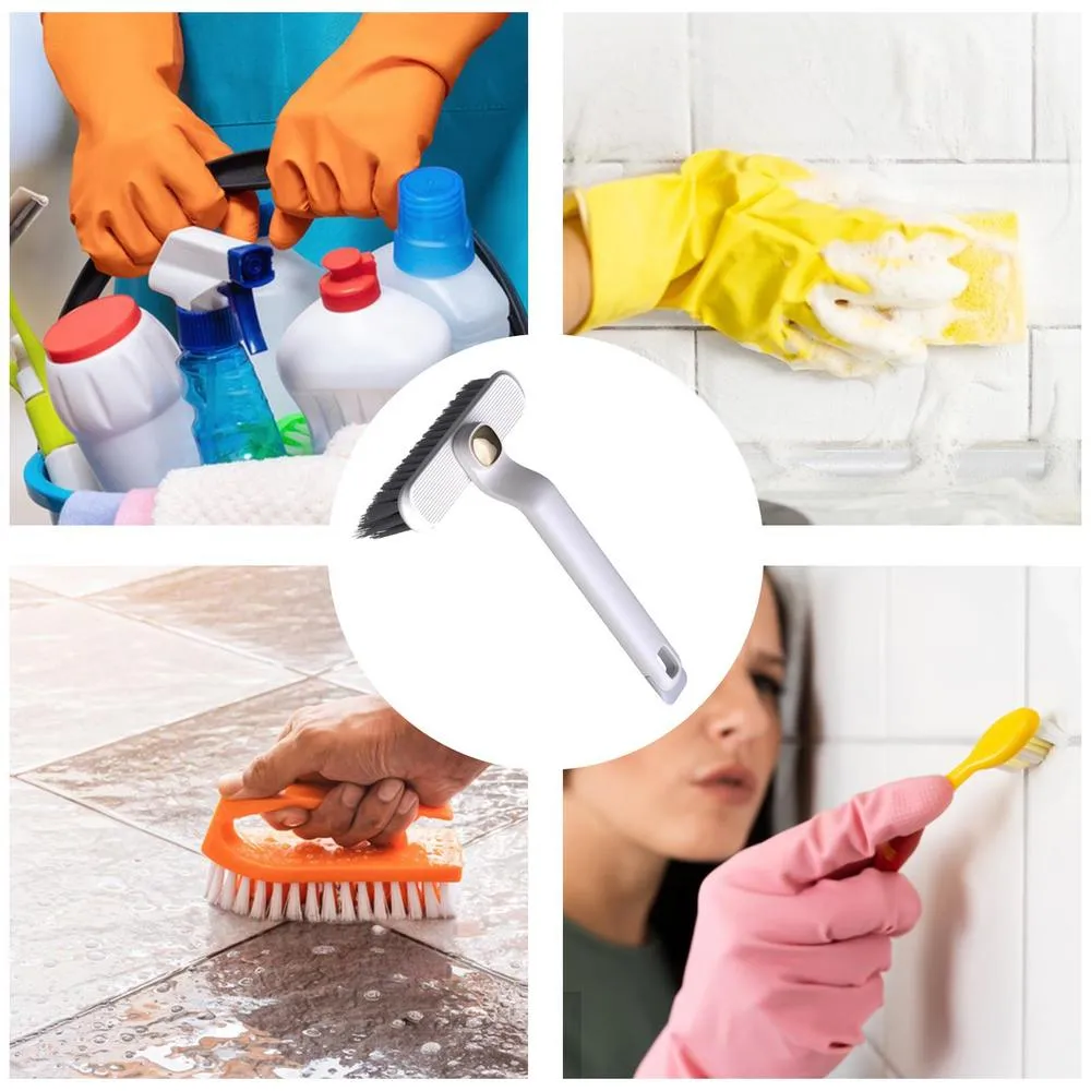 1.Flexible Cleaning Option: Clean drains, floor drains, gaps, corners & more with this versatile crevice cleaning brush. Perfect for multiple scenes, this tool makes cleaning a breeze and is a must-have for anyone looking to keep their space spotless. 2.Thoroughly Clean: This crevice cleaning brush has a 360-degree rotating brush head that can reach any corner and surfaces, making your cleaning more thorough. 3.Deep Cleaning: With outward slanting V-shaped bristles of moderate hardness, this crevice cleaning brush penetrates dirt in narrow gaps and corners, leaving them spotless and well-maintained without damaging tiles. 4.Ideal Tough Stain Fighter: No need to dirty your hands. Our Crevice Cleaning Brush with a tail shovel removes stubborn stains, like scale and glue, from tight spaces efficiently. Its spatula at the end of the brush head saves you effort in cleaning. 5.Comfortable Grip: The curved handle of our Crevice Cleaning Brush applies force evenly for efficient cleaning of tight spaces, and with its anti-slip material, you won`t have to worry about losing your grip. Hang it up on the wall for easy storage and accessibility with its hole design. Introducing our versatile Crevice Brushes for Cleaning! Designed to dig out dirt and clean hard-to-reach areas such as floor drains and corners. Adaptable to various angles and surfaces, it penetrates dirt and removes stubborn stains easily! With its anti-slip design, cleaning is made hassle-free.