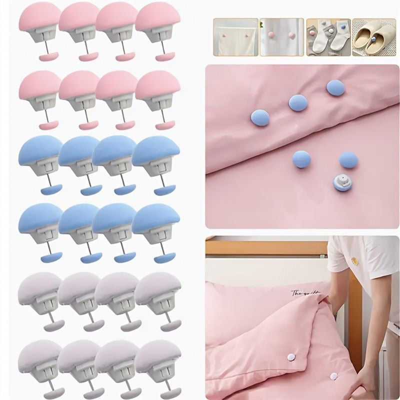 Keep your bedding perfectly in place with these one-button quilt clips. These fasteners hold your duvet cover, blanket, and sheet layers secure without slipping, and release easily with a single button.