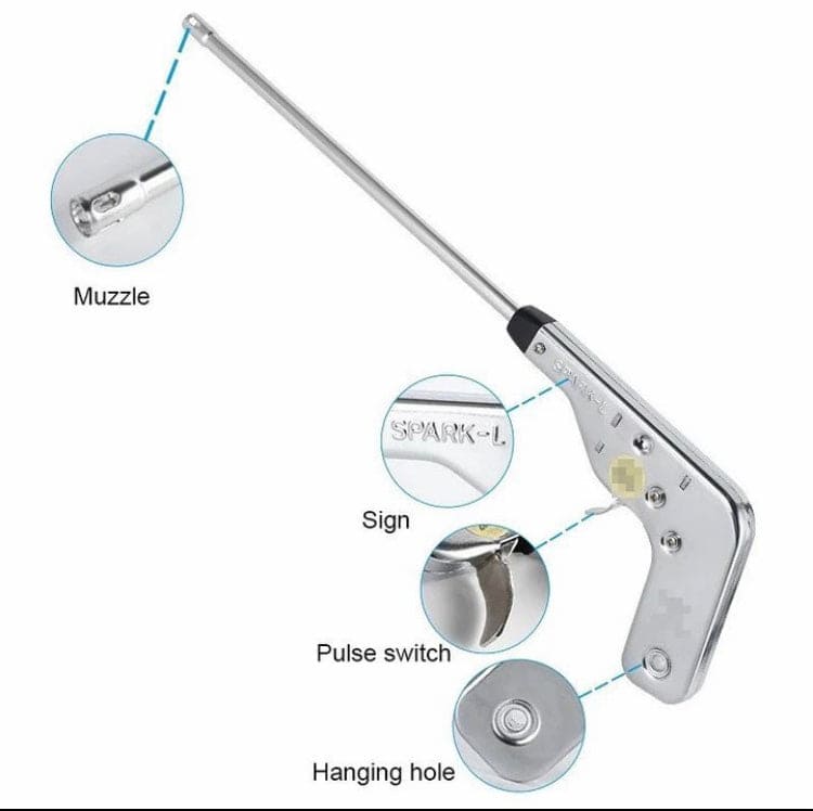 Powerful, precise and stylish — this gun-style electronic pulse ignitor produces a reliable metal spark for gas stoves, BBQs, candles and fireplaces. Ergonomic pistol grip, single-press ignition and a durable metal body make lighting quick, safe and satisfying.