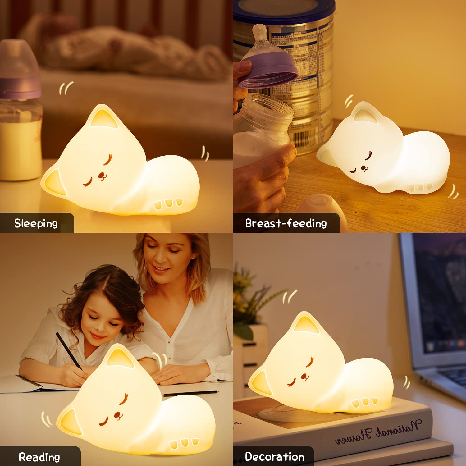 Kitty Night Color-Changing Night Light – Portable, USB Rechargeable Kids Lamp